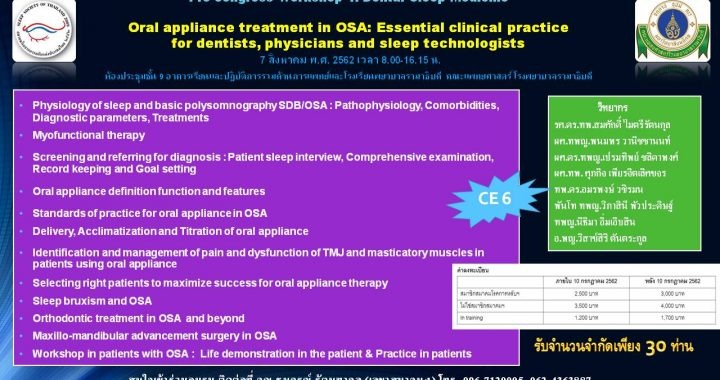 งานประชุม Precongress Workshop1: “Dental Sleep Medicine”