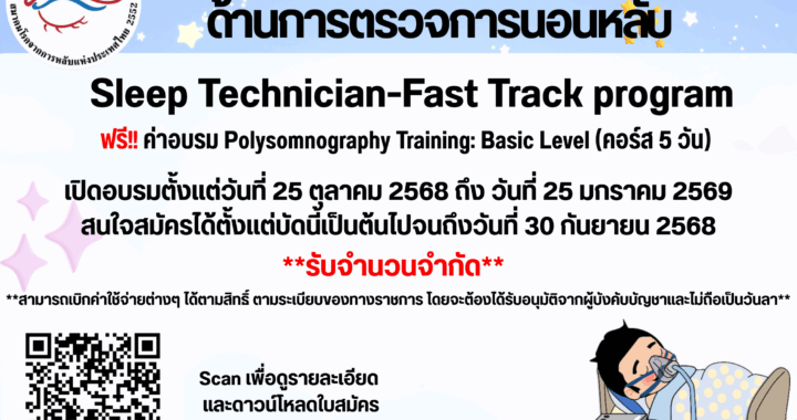 รับสมัครผู้สนใจเป็นมืออาชีพ ด้านการตรวจการนอนหลับ Sleep Technician-Fast Track program